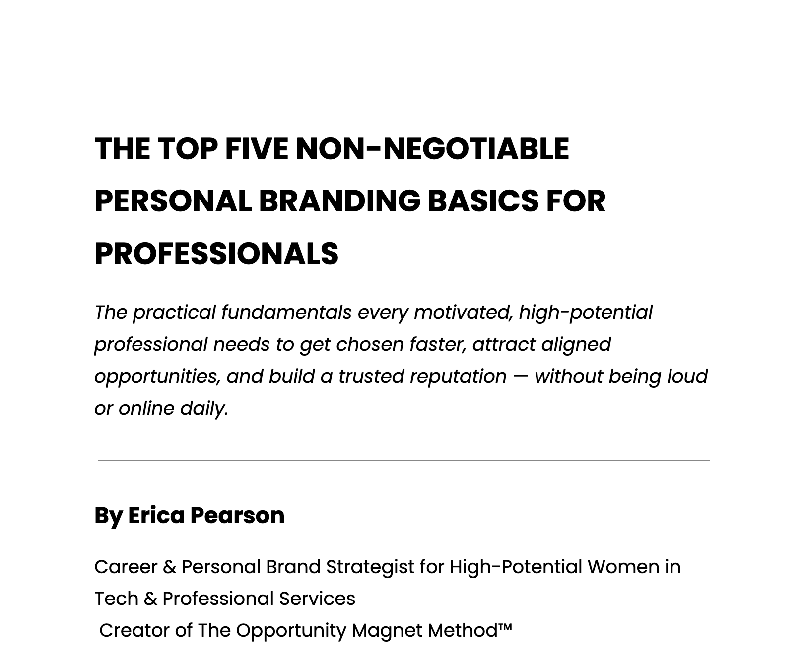 A simple, practical guide to help motivated, high-potential professionals stand out, get chosen faster, and build a visible opportunity pipeline — without being loud, salesy, or online all day.